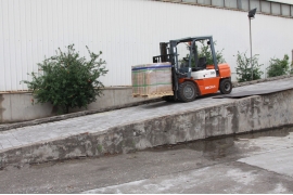 ● The binding strap is installed on the right side of the forklift guard rail frame (the right-hand side of the forklift driver).